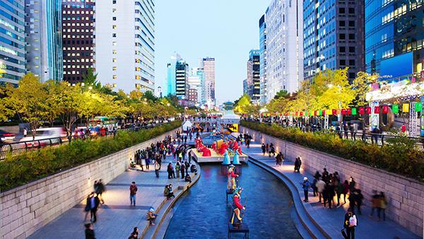 Suối Cheonggyecheon là con suối dài gần 6 km chảy giữa trung tâm thủ đô Seoul của Hàn Quốc. Ban đầu, nơi đây chỉ là con suối không tên và từng bị chôn lấp dưới lớp bê tông suốt 47 năm trong giai đoạn thành phố đang phát triển. Tuy nhiên, khi những tòa nhà cao tầng mọc lên như nấm bao phủ khắp Seoul, người dân lại muốn tìm một nơi nào đó thoáng đãng để hít thở, đi dạo và thư giãn. Đó chính là lý do Cheonggyecheon được khôi phục và trở lại đầy sức sống, khoe dòng nước mát trong chảy qua khu vực quảng trường Cheonggye, đường Sejongro, quận Jongno Gu. Đối với người Hàn Quốc, suối chính là "linh hồn" của thủ đô..